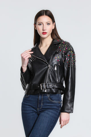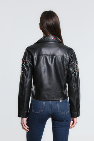 Giacca ecopelle con cerniere decorative