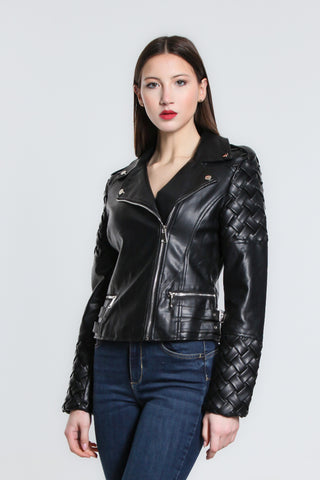 Giacca Ecopelle con Effetto Intrecciato